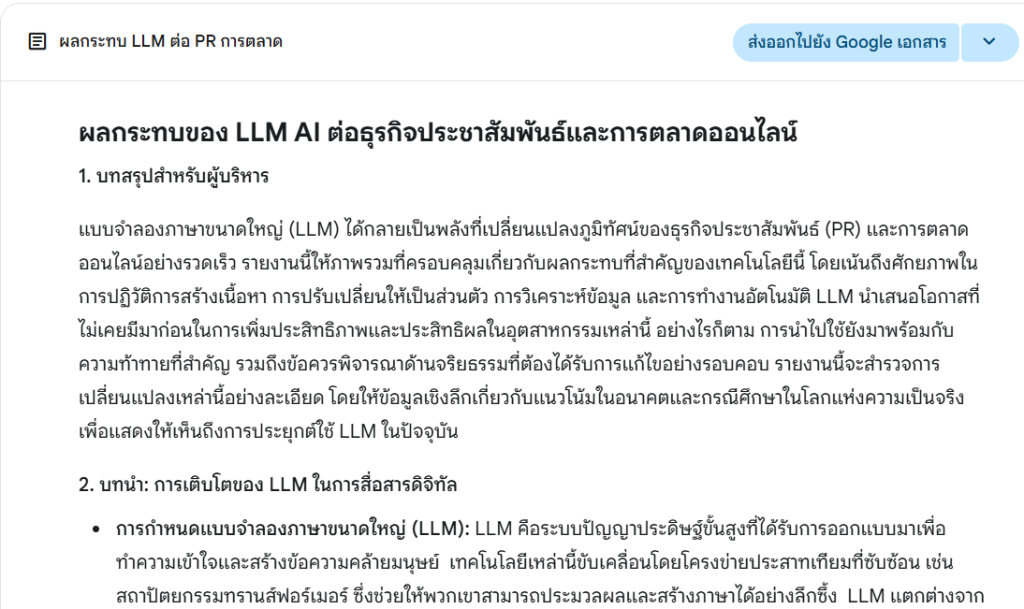 และนี่คือบทความเต็ม ๆ ที่ Gemini Deep Research ทำให้ ต่อประเด็น “ผลกระทบของ LLM AI ที่มีต่อธุรกิจ”