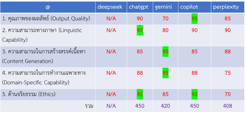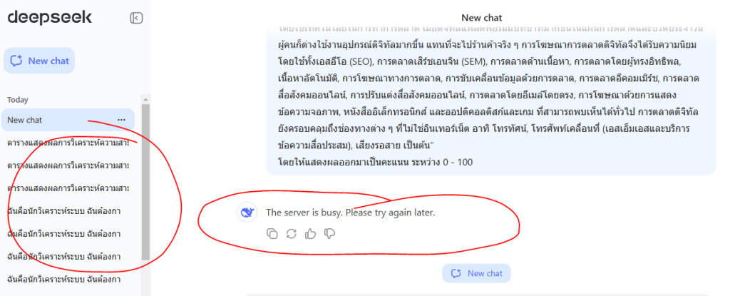 ดังแจ้งข้างบน ว่า deepseek ไม่ออกผล ไม่ให้คะแนน เนื่องจากมีผู้ใช้งานเยอะ