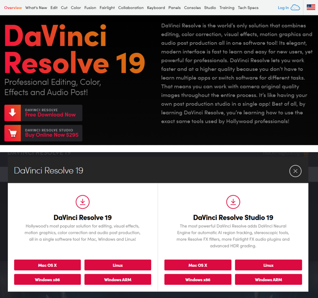 - เวอร์ชันเสียเงิน: มีค่าใช้จ่ายประมาณ $299 สำหรับการซื้อครั้งเดียว หรือสามารถได้รับโปรแกรมนี้เมื่อซื้ออุปกรณ์ Blackmagic