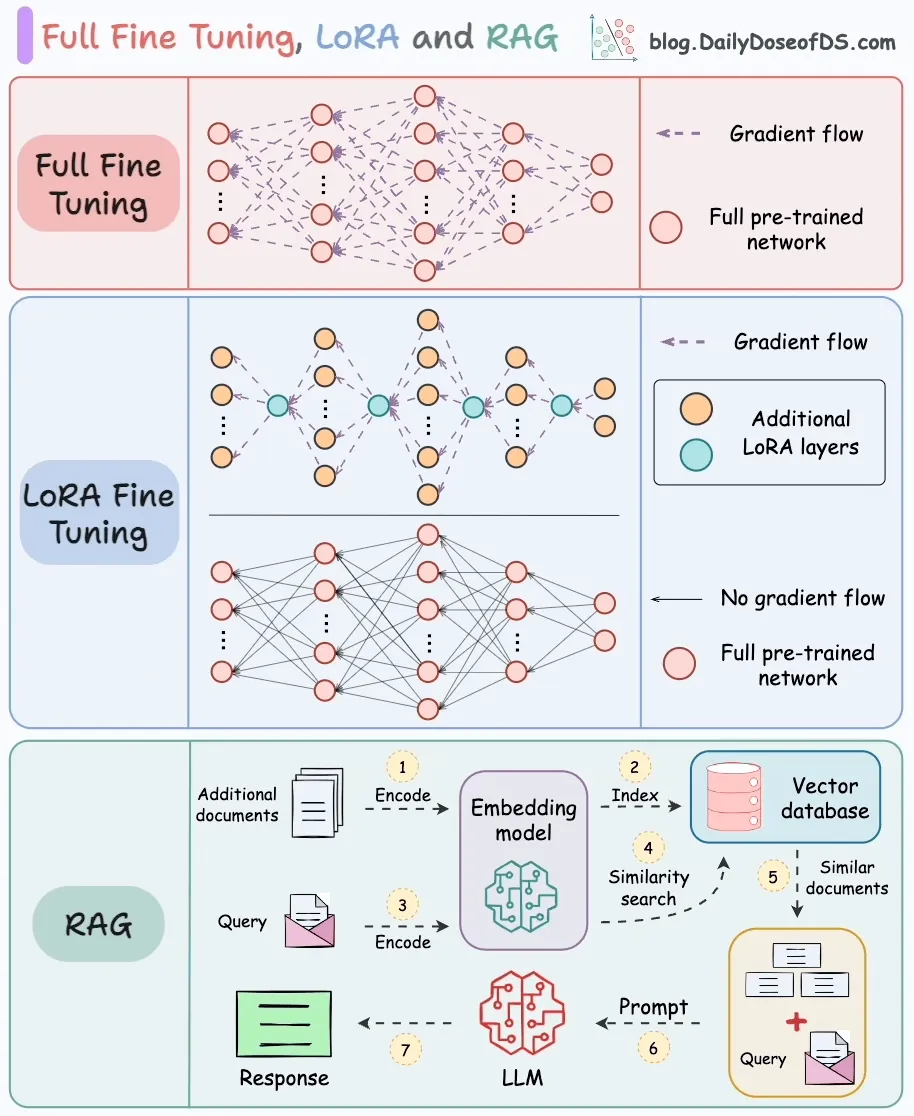 ที่มา : https://blog.dailydoseofds.com/p/full-model-fine-tuning-vs-lora-vs