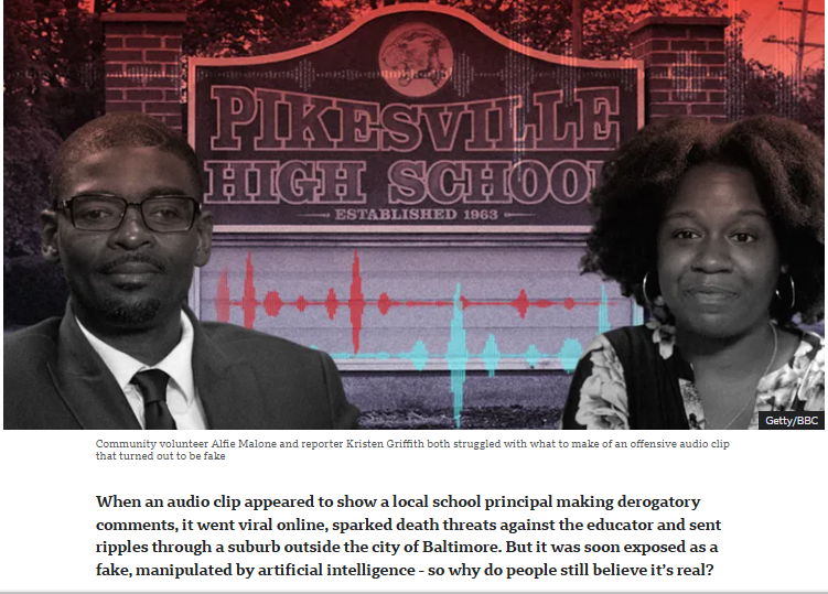 ในขณะที่ทีมผู้พัฒนา AI ก็ได้สร้าง AI มากขึ้นเรื่อย ๆ และมีความสามารถมากขึ้นเรื่อย ๆ จำสามารถทำงานบางอย่างแทนมนุษย์ได้ ในขณะเดียวกัน อีกมุมหนึ่ง ซึกที่กังวลถึง “คุณธรรม จริยธรรม” ที่ปัญญาประดิษฐ์ อาจยังมีข้อจำกัดอยู่ และมีการถกเถียงกันในสังคม ดังจะเห็นได้จากการรายงานของ BBC ที่พาดหัวข้อข่าว The racist AI deepfake that fooled and divided a community ดังรูป